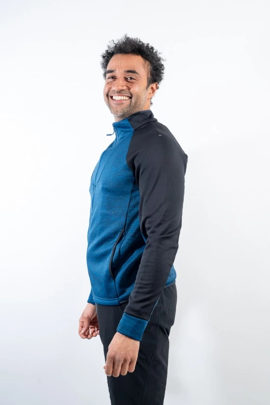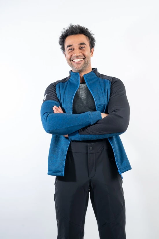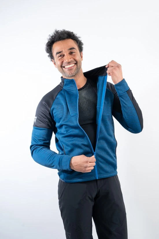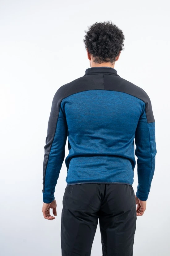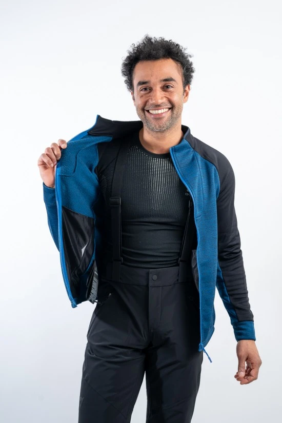 Sottotuta full zip in tessuto elasticizzato felpato. Caldo e traspirante è ideale sotto la giacca da sci. Due pratiche tasche laterali.