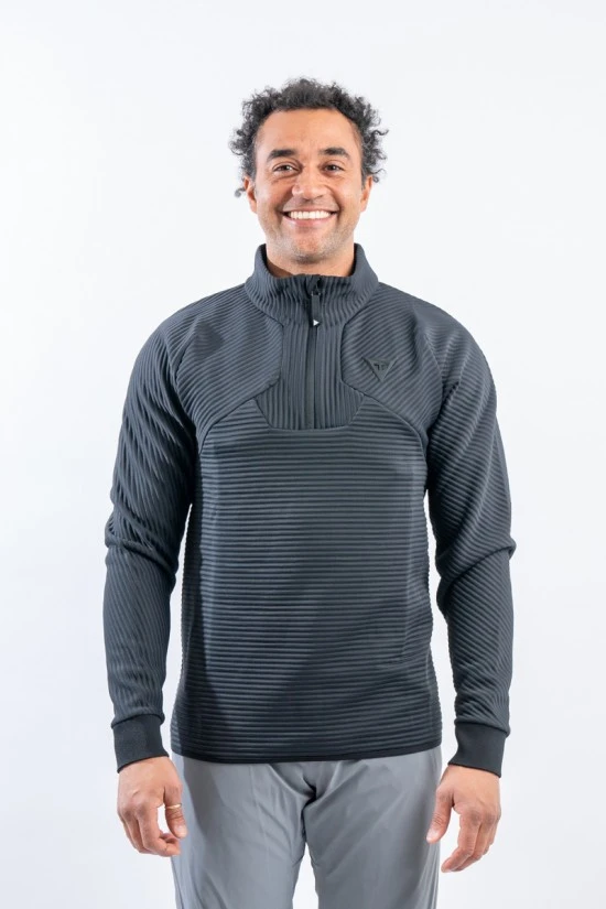 Sottotuta mezza zip caldo, traspirante e confortevole. Tessuto elasticizzato con struttura a coste che garantisce l’ottimale trasporto dell’umidità all’esterno. Termoregolatore, è ideale sotto la giacca da sci e per praticare ogni sport all’aria aperta.