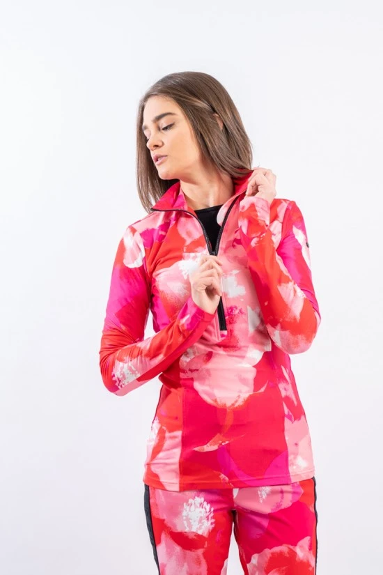 Sottotuta mezza zip in tessuto elasticizzato e traspirante con stampa all over. Costruito con tecnologia Silvadur ad azione antibatterica. Vestibilità slim. Morbido e leggero adatto a tutti gli sport all’aria aperta.