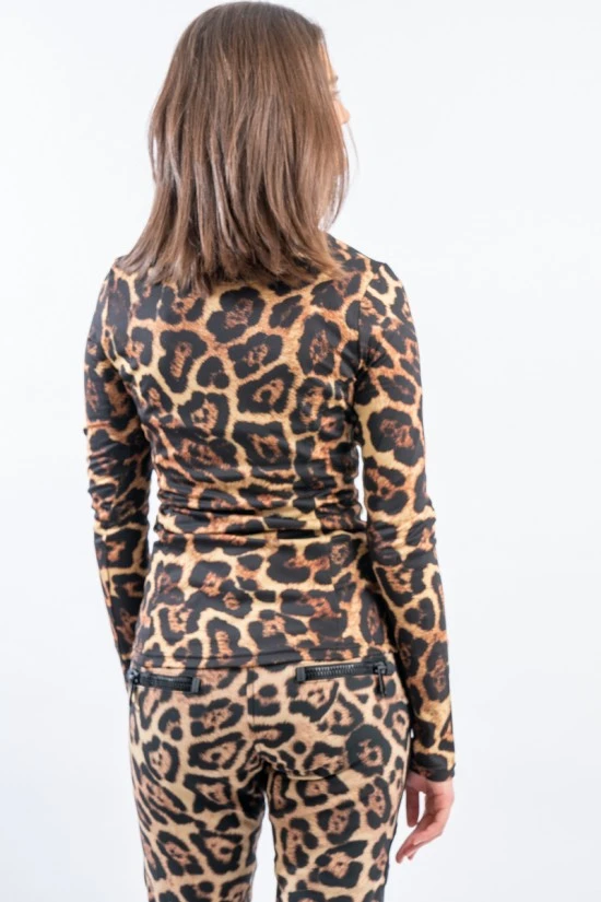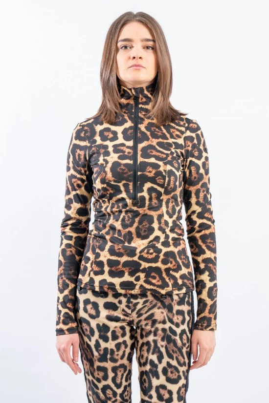 Sottotuta mezza zip in tessuto elasticizzato e traspirante. Stampa animalier. Vestibilità slim. Morbido e leggero è adatto a tutti gli sport all’aria aperta.