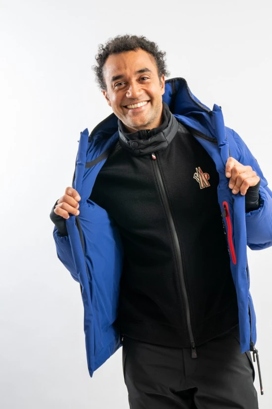 – taschino porta skipass con zip gommata e lettering Moncler stampato a contrasto