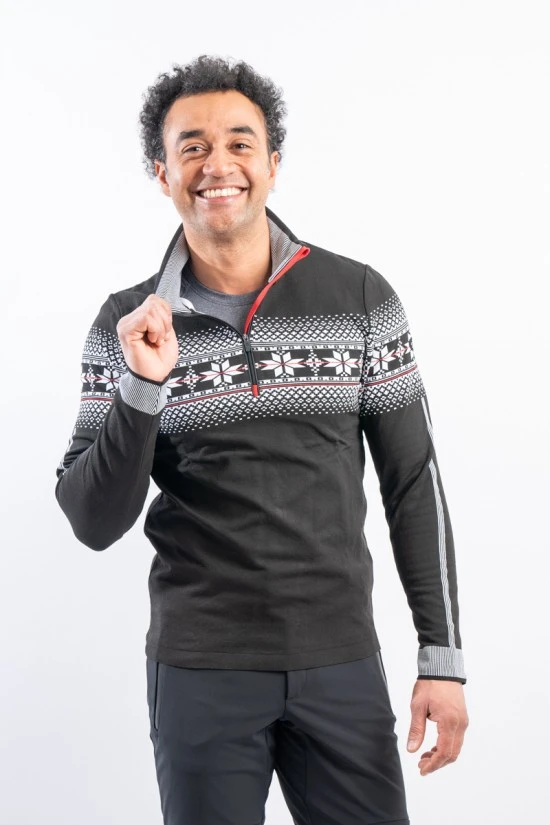 Sottotuta mezza zip in tessuto DH-Tech 400 high performance. Prodotto realizzato con un filato a base di polipropilene estruso caratterizzato da un filo cavo internamente. Questa inedita soluzione rigorosamente Made in Italy rende il prodotto compatto ed elastico per un comfort ed una vestibilità senza eguali, proprio come una seconda pelle.