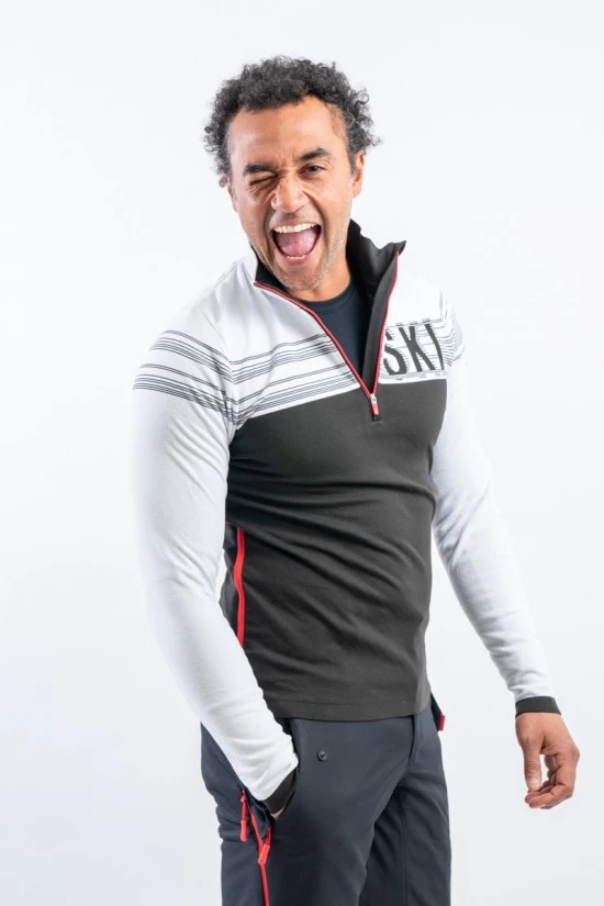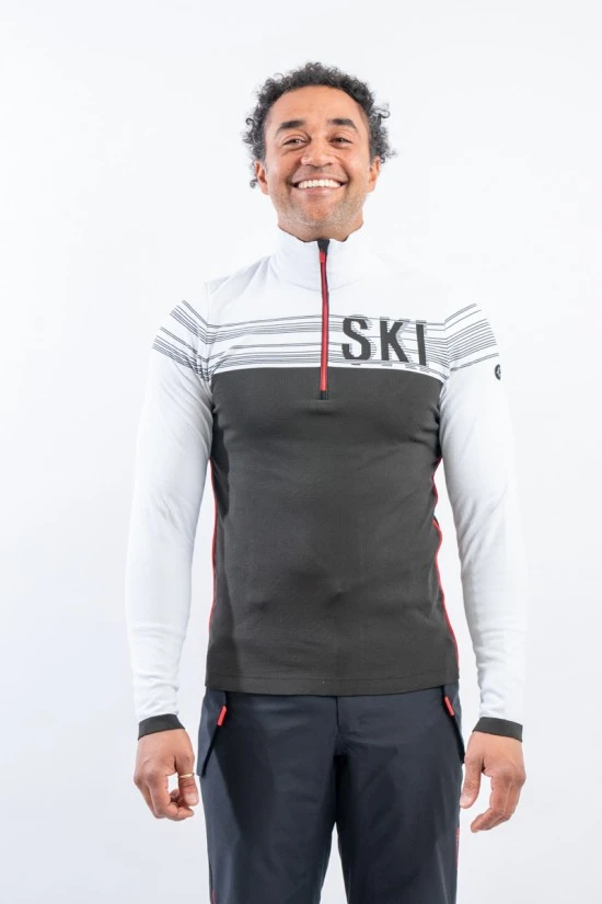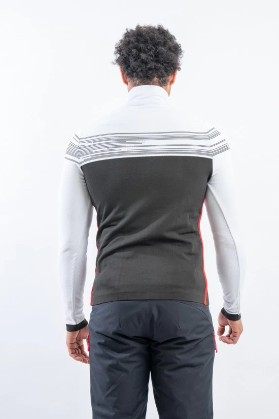 Sottotuta mezza zip in tessuto DH-Tech 400 high performance. Prodotto realizzato con un filato a base di polipropilene estruso caratterizzato da un filo cavo internamente. Questa inedita soluzione rigorosamente Made in Italy rende il prodotto compatto ed elastico per un comfort ed una vestibilità senza eguali, proprio come una seconda pelle.