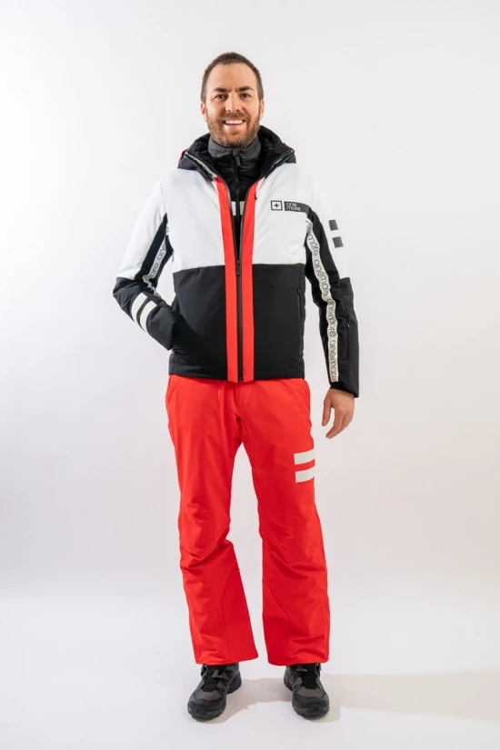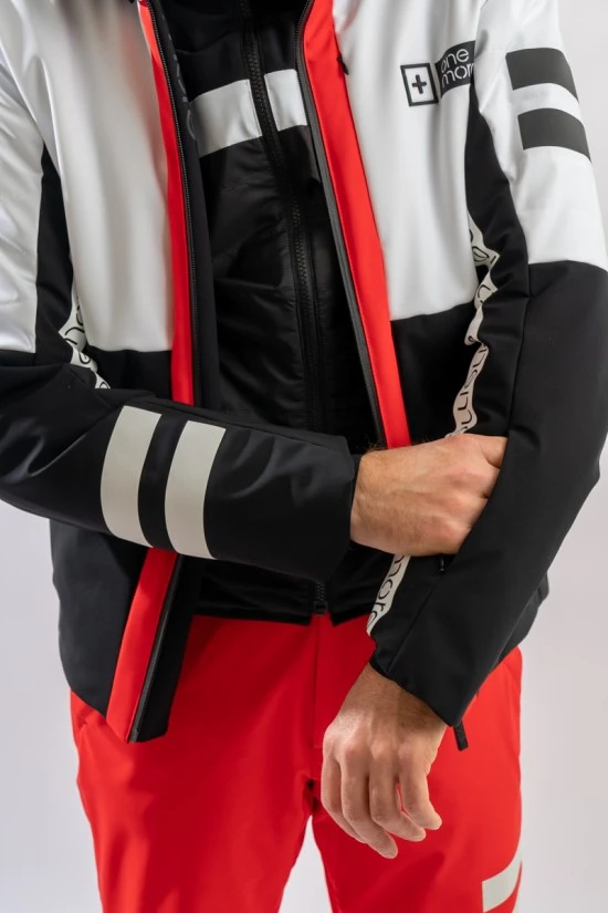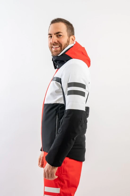 Realizzata in bi-materiale, tessuto tecnico 4-way stretch e Softshell, è altamente impermeabile e traspirante. Confortevole e pratica grazie alle varie tasche in dotazione, garantisce piena libertà di movimento. Imbottita in morbida ovatta ecosostenibile, è calda ed isolante. Caratterizzata da una linea classica alternata da dettagli a contrasto, e da elementi funzionali, è perfetta per affrontare le piste in ogni condizione.