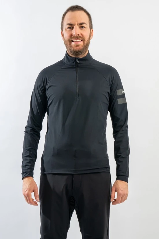 Sottotuta mezza zip realizzato in micro pile elasticizzato con filato rigenerato Econyl. Traspirante e caldo. Caratterizzato dai dettagli distintivi del marchio stampati sulla manica, è deale per praticare sport all’aperto o come sotto giacca.