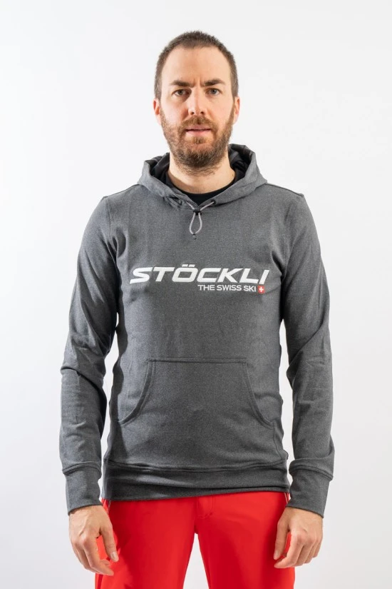 Hoody pullover è costruita con materiali tecnici. Leggera ma calda inoltre permette un ottima traspirazione. Cappuccio regolabile. Logo STÖCKLI the swiss ski, frontale.Tasca a marsupio.