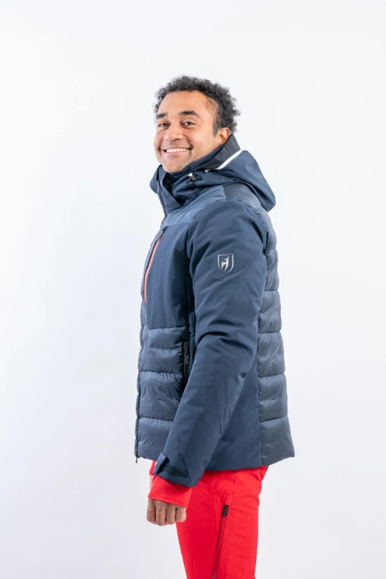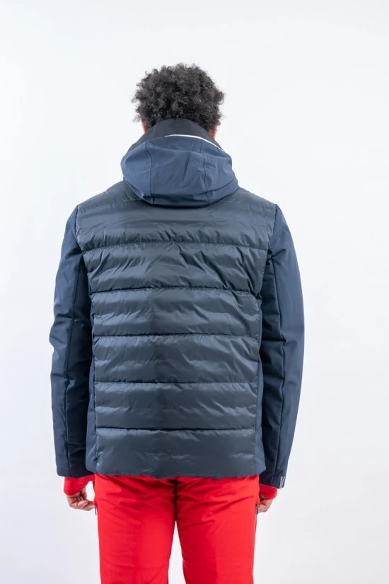 Giacca sci Ano firmata Toni Sailer. Realizzata in bi-materiale, tessuto Premium 4 way stretch e nylon ripstop, garantisce piena libertà di movimento ed elevati standard di impermeabilità e traspitazione. Isolazione ottimale grazie alla morbida imbottitura in calda ovatta. Pratica e confortevole grazie alle varie tasche ed al cappuccio staccabile. I dettagli, in contrasto di colore abbinati alla classica trapuntatura boudine, restituiscono al capo un look sportivo e raffinato. Ideale in ogni condizione.