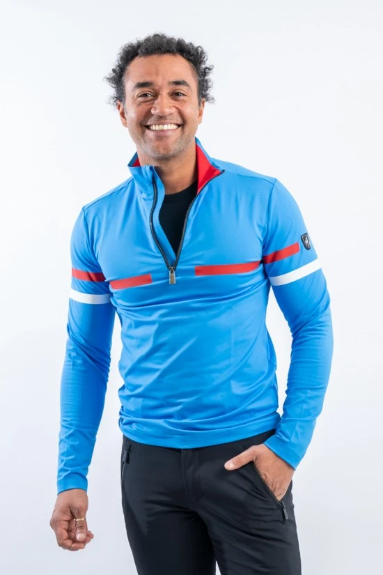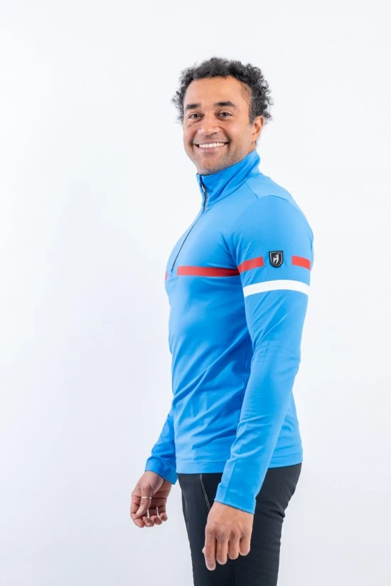 Sottotuta mezza zip Bryan firmato Toni Sailer. Realizzato in tessuto tecnico elasticizzato. Caratterizzato dagli inserti a contrasto di colore sul petto e sulle maniche. Confortevole, caldo e traspirante è ideale in ogni occasione e condizione.