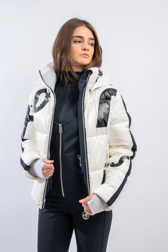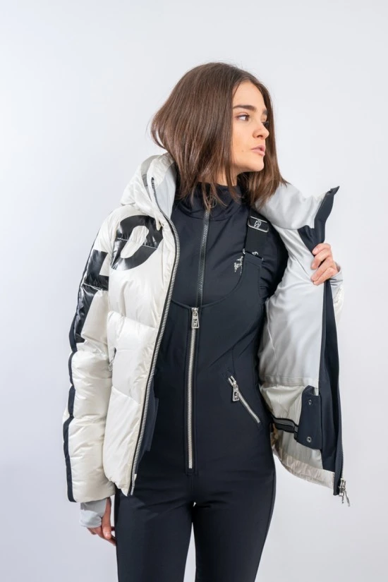 Giacca sci Louisa firmata Toni Sailer. Caldo piumino realizzato in Shiny Pearl, morbido tessuto effetto metallico arricchito dalla stampa lettering Toni Sailer. Soluzioni innovative garantiscono elevati standard di impermeabilità e traspirazione. Pratico e confortevole grazie al cappuccio staccabile e alle varie tasche in dotazione. Materiali funzionali e look moderno si incontrano in un capo ideale per la montagna e la città.