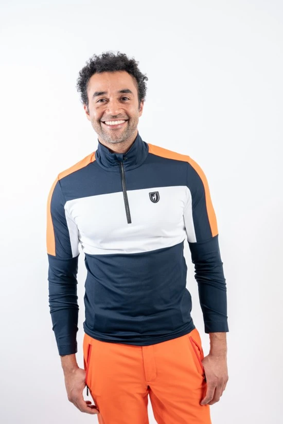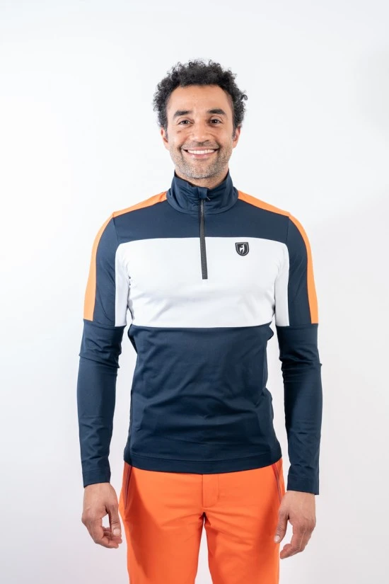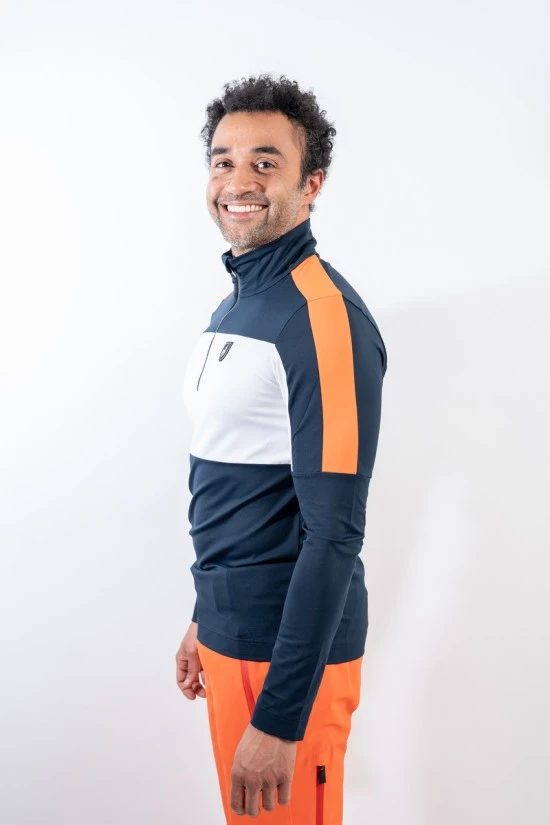 Sottotuta in tessuto tecnico elasticizzato e felpato. Mezza zip. Inserti in cotrasto sulle maniche e sul davanti. Logo istituzionale cucito sul petto.