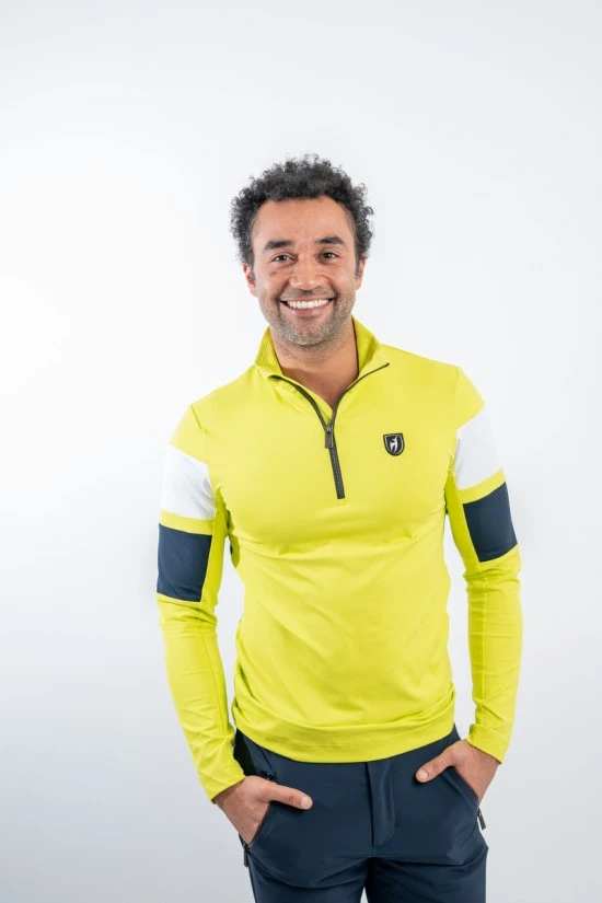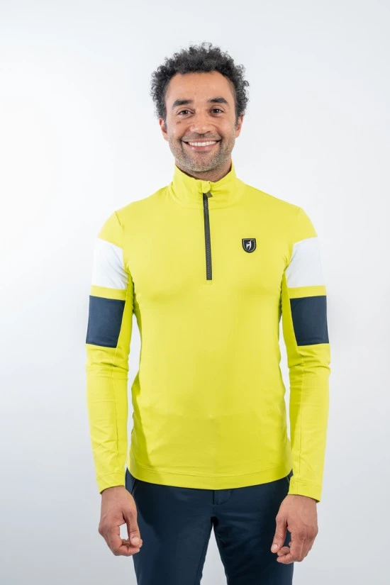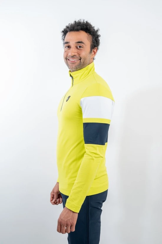 Sottotuta in tessuto tecnico elasticizzato e felpato. Mezza zip. Inserti in cotrasto sulle maniche e sul dietro. Logo istituzionale cucito sul petto.